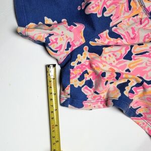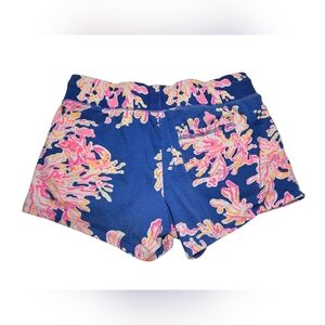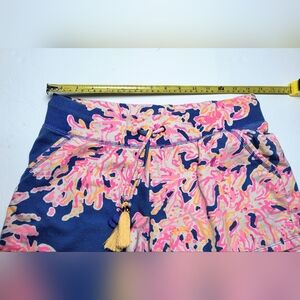 Lilly Pulitzer Yasmin Coral Print Brilliant Blue Tassel Drawstring Preppy Shorts S. Eye-catching coral design. High waist fit. Ideal for summer style. In very good pre-loved condition.