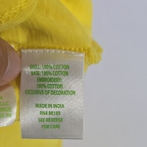 This vibrant yellow tank top from Lilly Pulitzer features a charming ruffled neckline and a sleeveless design, perfect for a summery look. The lightweight fabric drapes beautifully, offering a feminine and cheerful style. Ideal for adding a touch of elegance to your wardrobe. Approximately 22" total length, top of shoulder to bottom back.