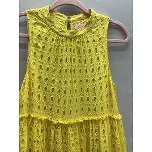 Lilly Pulitzer Yellow Sleeveless Eyelet Tiered Lined Summer dress Size S EUC
