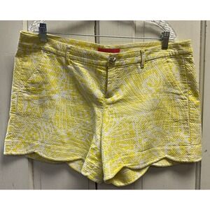 Lilly Pulitzer Yellow White Leaf Print Textured Buttercup Shorts Size 16