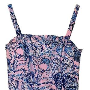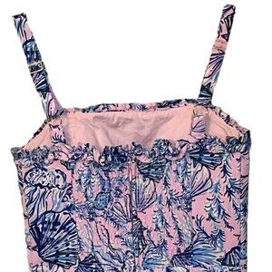 Lilly Pulitzer Zenon Ruffle Romper Magnolia Lilac Ruffle Strappy Size 00. This romper is made of 97% Polyester 3% Spandex. It measures Underarm to Underarm 14", Length 25". This romper is in pristine, used condition. There are no rips, tears, stains or damage. Ships from a Smoke Free Home. Any questions, please ask. All reasonable offers welcome.