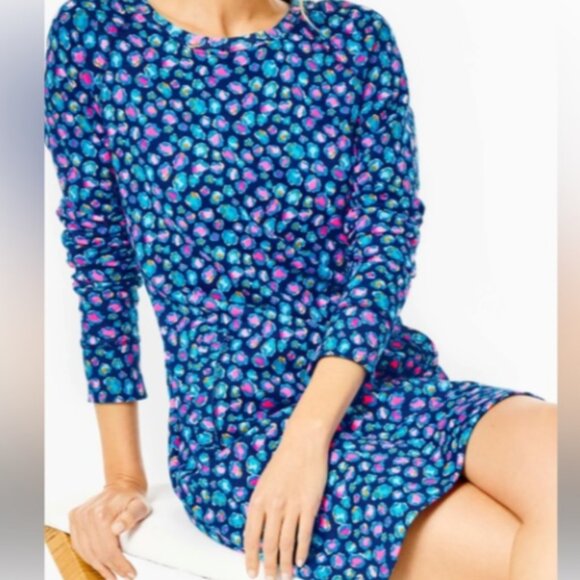 Lilly Pulitzer beachcomber, long sleeve seabreeze, blue low tide navy spotted comfortable Dress medium weight