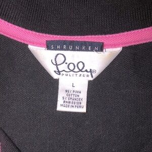 Lilly Pulitzer black polo top vintage size large shrunken