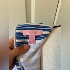 Lilly Pulitzer bree bay Blue Striped Midi Dress v neck fit and flare
