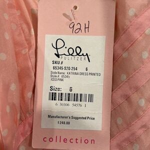 Lilly Pulitzer collection Katrina dress strapless iced pink with white polka dots.