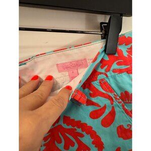 Lilly Pulitzer coral and blue shorts with seahorses and coral size 4