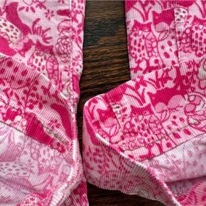 Lilly Pulitzer owl print corduroy pants, size 6. These pants were originally a size 7, but have been hemmed to be more like a 6 in length, which is why I have them listed as a size 6. They have waist adjusters, front and back pockets and are printed with the cutest owls. They are in VGUC, worn gently. Please see photos for exact condition and details. Smoke free home.