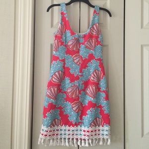 This fun Lilly Pulitzer dress will turn heads! I have only worn it once and got a lot of compliments. Sadly it is a little too snug for me to wear now.