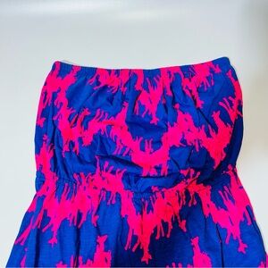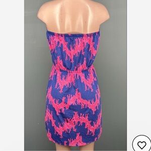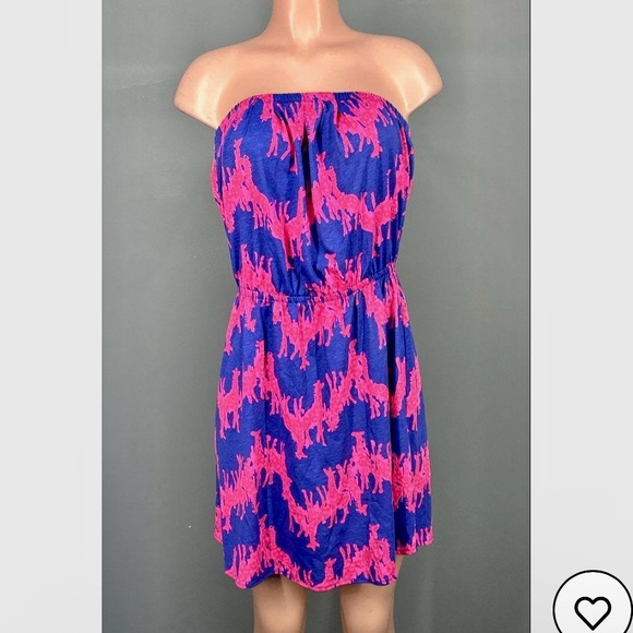 Playful and effortlessly chic, this preowned Lilly Pulitzer strapless dress features the iconic “Giraffic Park” print in bold pink on a rich navy background. With an easy, pull-on style and elasticized waist, it’s perfect for sunny days, beach getaways, or brunch with friends. A fun and rare print that Lilly lovers adore!