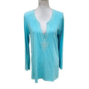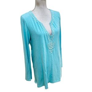 Lilly Pulitzer eliana aqua Blue white beaded Tunic top size large