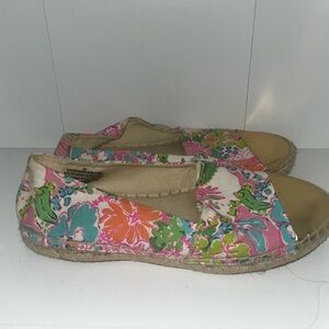 Lilly Pulitzer espadrilles floral espadrilles colorful flats gold cap toe flats
