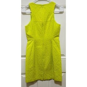 A vibrant and stylish Banana Republic Millie Collection dress, perfect for making a statement. This sleeveless dress features a unique textured pattern that adds depth and visual interest. The classic shift silhouette offers a flattering fit, making it suitable for various body types. The bright yellow color ensures you'll stand out in any crowd. Ideal for cocktail parties, summer events, or a chic office look, this dress combines sophistication with a playful edge.