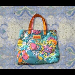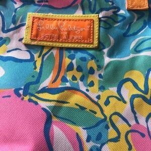 Nice Lilly Pulitzer For Este Lauder Floral Canvas Tote. Colorful. Lined in dark Pink Double handles. Logo on front. There are a couple of small spots.. may come out.( see pics) From a smoke free home