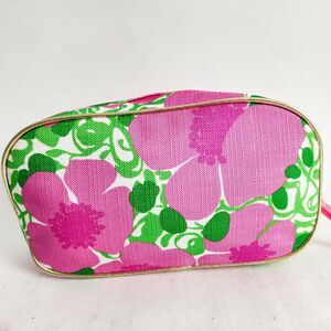 Lilly Pulitzer for Estee Lauder Pink Green Floral Travel Make-up Bag Pouch 9"x5".