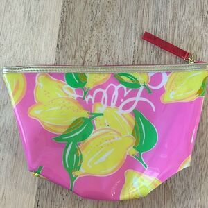 Lilly Pulitzer for Estee Lauder pink and yellow lemons zippered pouch cosmetic bag