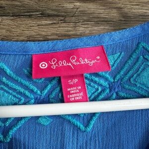 Lilly Pulitzer for Target Blue Embroidered 3/4 Sleeve Blouse