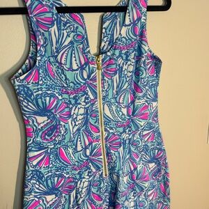 Lilly Pulitzer for Target Blue and Pink Patterned Mini Dress with White Lace