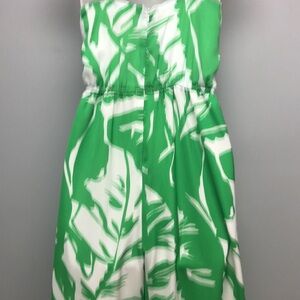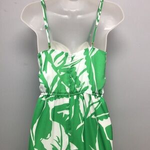 Back zipper, fully lined with adjustable straps. Tropical print. Gently worn and in good condition.
