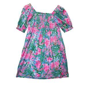 Lilly Pulitzer girl Amalfi blue leaf wild mini Delaney dress size XL 12-14 NWT