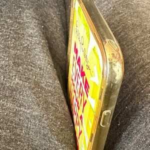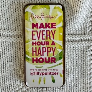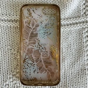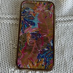 Gently used for about a month at most. There's small signs of wear on the Gold corners--but very slight--the last picture is the worst of it. Case is a multicolored Lilly print, with the Lilly Pulitzer logo printed on the back. Fits iPhones 7 and features a silicone bumper around the edge to offer more protection for your phones. Phone cover is made of a flexible plastic (TPU) material that allows you to easily slip the case on/off and wipe it clean. Has a cutout for the camera & phone charger for easy accessibility. Covers exterior buttons for extra protection.