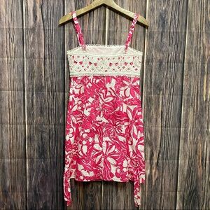 This dress is in excellent condition! Zips up the back and straps are adjustable. Crochet lace detailing. Lobster pattern. Smoke and animal free home.