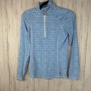 Lilly Pulitzer luxletic blue and white striped jacket in size Small. Super luxe and stretchy. Gently preloved in great condition. 3/4 zip