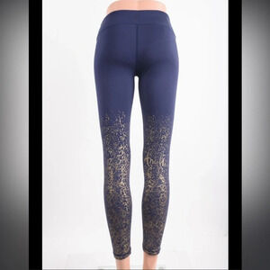 Lilly Pulitzer leggings, Luxletic activewear, gold foil print leggings, XS workout pants, navy and gold ombré leggings