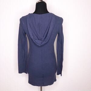 Lilly Pulitzer navy blue white scroll trim hooded knit top size Extra Small XS