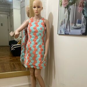 Lilly Pulitzer pearl sunrise orange two tone trule petal lace shift dress
