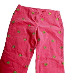 Lilly Pulitzer pink flared Pants pull on green embroidered bees size 2