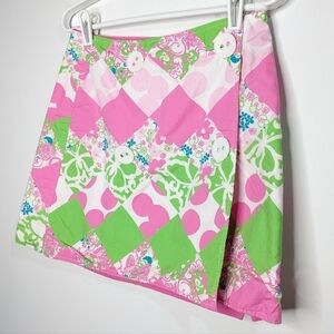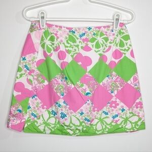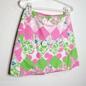 Lilly Pulitzer pink green button wrap short mini skirt 0