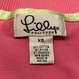 Size xs. Pink. Brand is Lilly Pulitzer. V neck. See pic for material make up. Worn a few times