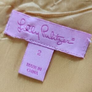 Lilly Pulitzer shift dress yellow & white bamboo print lattice neckline size 2