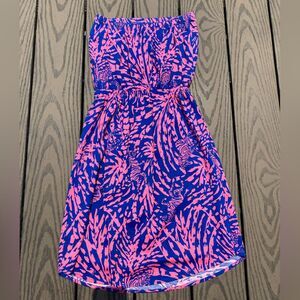 Lilly Pulitzer size 2/4 rolling in the grass blue pink strapless zebra dress