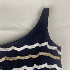 Lilly Pulitzer size 4 small one shoulder blue gold Dress stripe sirens guest