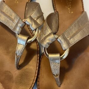Nobody’s gonna see the footprints in these so don’t worry about that once they’re on your feet they’re gonna look awesome and spectacular. They’re size 6 and they are leather and they are Lily Pulitzer and they are awesome. So these are the sandals you need to purchase.