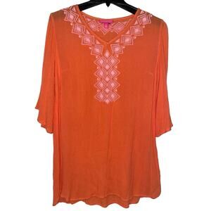 Lilly Pulitzer size Small Embroidered Trim Bell Half Sleeve Coastal Tunic Top
