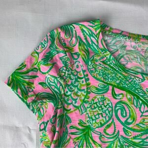 Lilly Pulitzer size XS extra small pink pineapple fish Vibrant Pink Green Tee