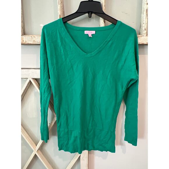 Lilly Pulitzer size small green silk blend lightweight sweater in great condition. Measures 19” from armpit to armpit and 27” long.