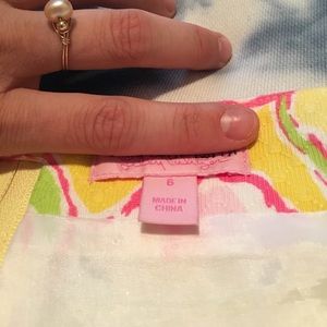 Gently used yellow Lilly Pulitzer skirt with pink and green flowers. 100% cotton, very comfortable, size 6. My finger is covering my name that's written on the tag. Make me an offer !