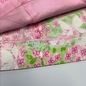 Lilly Pulitzer skirt Pink butterfly Green Floral Mini Skirt lace trim y2k casual