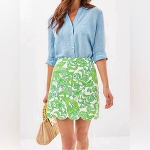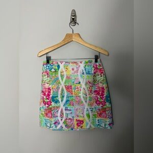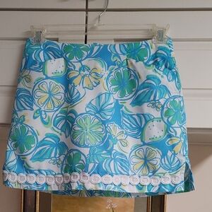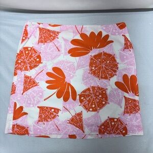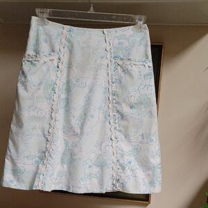Women’s Lilly Pulitzer skirt pink size 0! Zip in the back. White embroidery with beach type print! Worn a couple of times, in perfect condition!