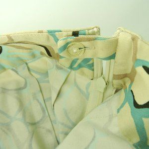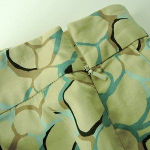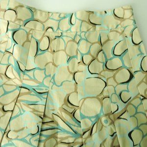 Lilly Pulitzer elegant skirt. Zip closure and button on the left side, A-line, pleated from the hips, abstract bird/flowers print Size - 10 Waist band - 14.5" (measured at the top of waist band from side to side) Length - 22.5" Across the hips - 24" Across the bottom/hem - 32" Material - 98% Cotton, 2% Spandex (Machine Wash Cold) Condition - No issues to mention. Good pre-owned condition