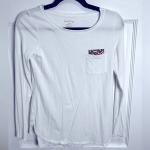 SEO Keywords: Lilly Pulitzer long sleeve tee, Pima cotton shirt, metallic pocket top, white basic layering shirt, XXS Lilly Pulitzer top