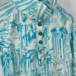 Lilly Pulitzer spring button front pullover blue XS tropical print