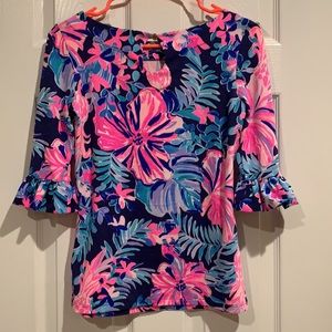 Beautiful vibrant colors take you to paradise with this Lilly top on.