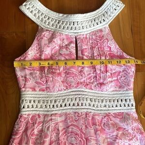 Lilly Pulitzer vintage 100% linen dress floral sundress bright pink white