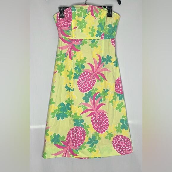 Lilly Pulitzer vintage strapless dress in yellow and pink pineapple print