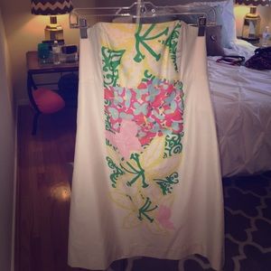 This dress is white with a pattern in the middle! More subtle than the completely patterned dresses! Perfect for the summer! ๐๐ท