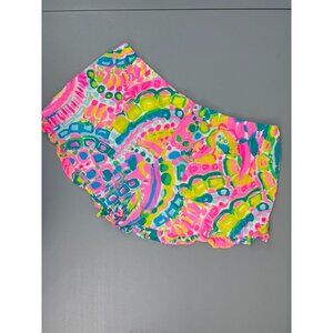 Lilly Pulitzer brand women's size medium Kya shorts. In like new condition, little to no sign of wear. Bright neon patterned shorts are lightweight with an elastic waistband. Cute ruffle hemline.